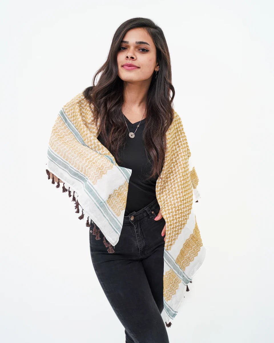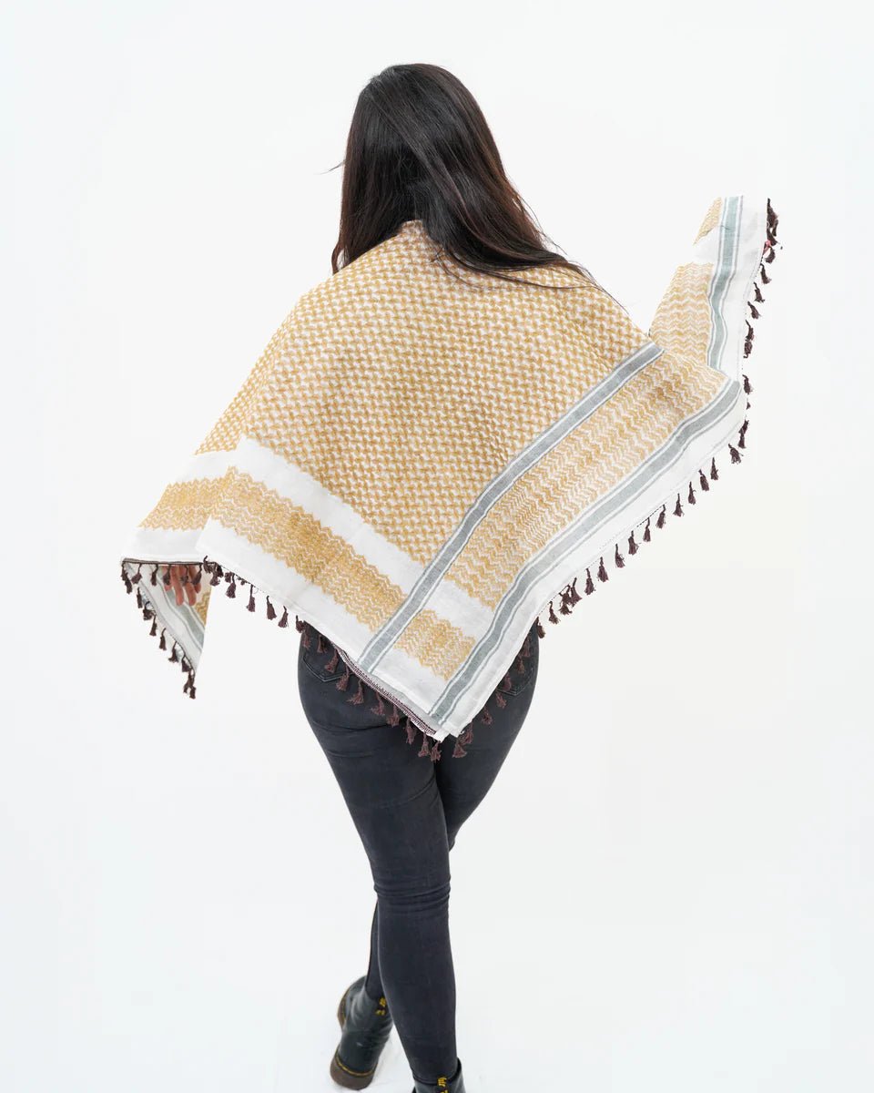 Known as the Keffiyeh (pronounced “Kufiya” in Palestine), this piece carries deep cultural and symbolic meaning. For generations, it has stood as a powerful emblem of resistance, resilience, and freedom for the Palestinian people.